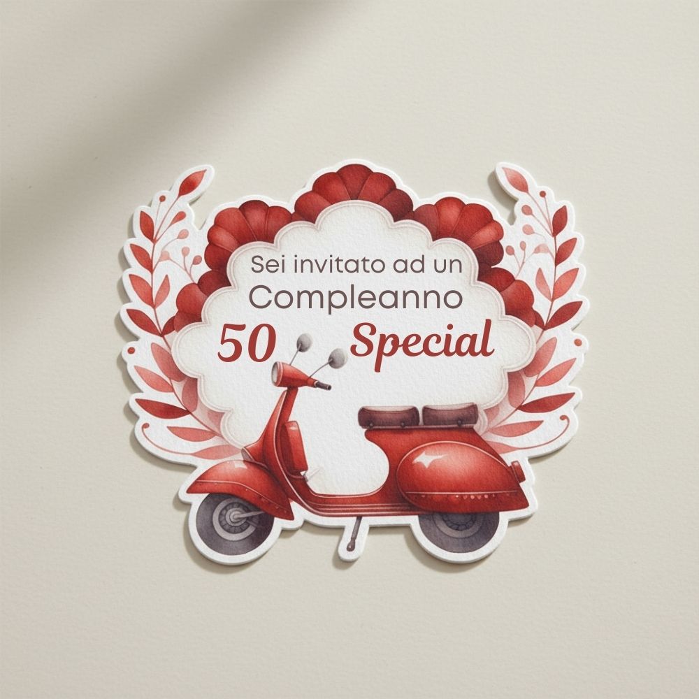 Celebra i 50 con stile. Personalizza il tuo invito e sorprendi gli invitati. 🛵✨