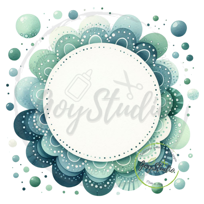 Ecco la cornice petali smerlati grafica digitale per chi pensa che “semplice” sia sinonimo di “noioso”. Petali puntinati azzurro-verde che fanno più effetto di un filtro Instagram, ma stampabili. Perfetta per matrimoni dove gli inviti devono essere all’altezza del budget speso per il fotografo 📸